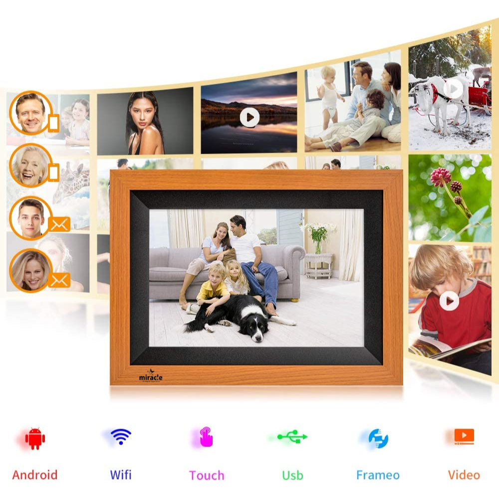 - Miracle Digital 10.1 inch Wi-Fi Smart Digital Photo Frame comes with a Diamond Cut design great Touch Screen Feature and 1280x800 resolution with a high display and a 16:10 aspect ratio for high-end video and picture quality of 1080p